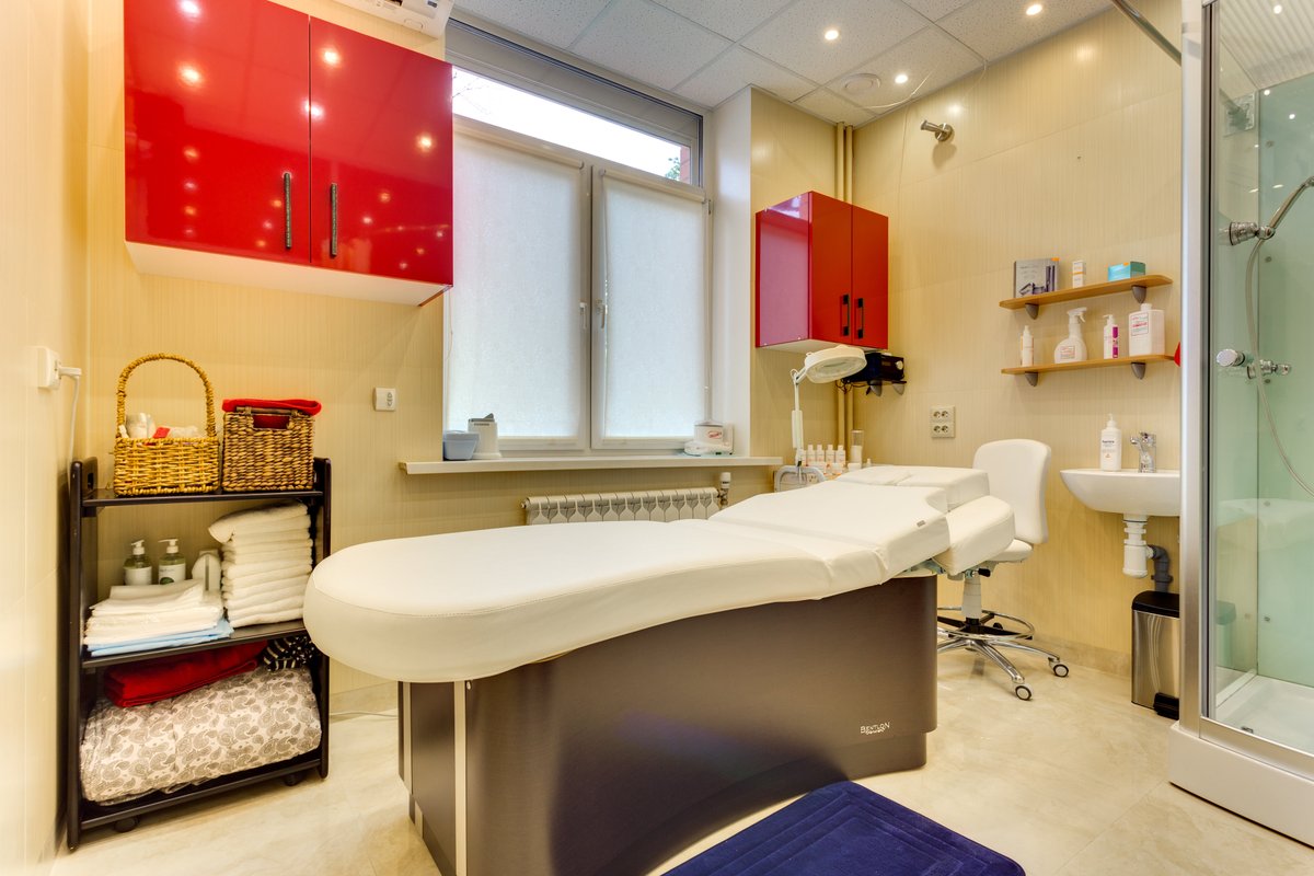 Также к услугам наших клиентов антицеллюлитный массаж, массаж головы и лица, чистка лица, косметология, в том числе аппаратная, пилинг, контурная пластика, коррекция формы бровей, окрашивание ресниц, татуаж, мелирование, тонирование, выпрямление, наращивание, укладка, химическая завивка и маски для волос, вечерние и свадебные прически, мужские стрижки, стрижка бороды и усов, педикюр, в том числе аппаратный, спа-уход для ногтей.
